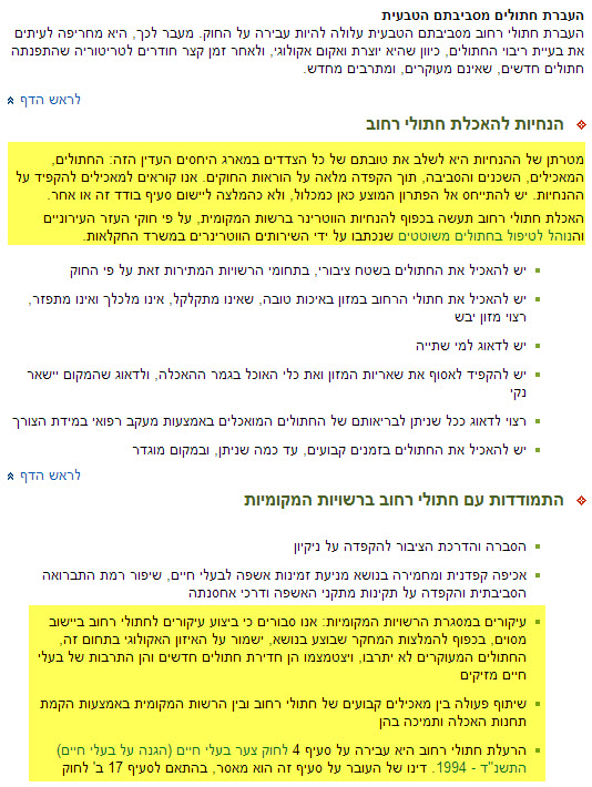 מסמך : " הנוהל לטיפול בחתולים משוטטים " .